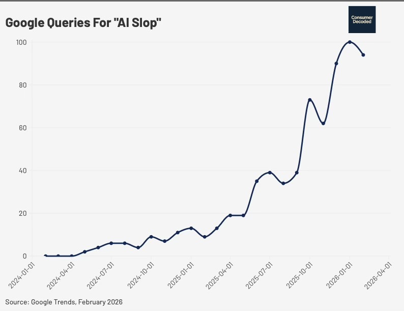 Most of us can spot it now—the “it's not X, it's Y” phraseology or the words like “quietly” and “operating system” that you never noticed before but suddenly seem to read everywhere. It's commonly referred to as AI slop—the overabundance of certain phrases and constructions in our written communication as more people are using AI to write. The irony is most people complain about AI slop because of the repetition and yet use it to write because it sounds credible and often produces superior results— particularly on social media. This has big implications for the ads that we see and how commerce evolves to engender more trust and authenticity in a world where the content that we consume is increasingly artificial.